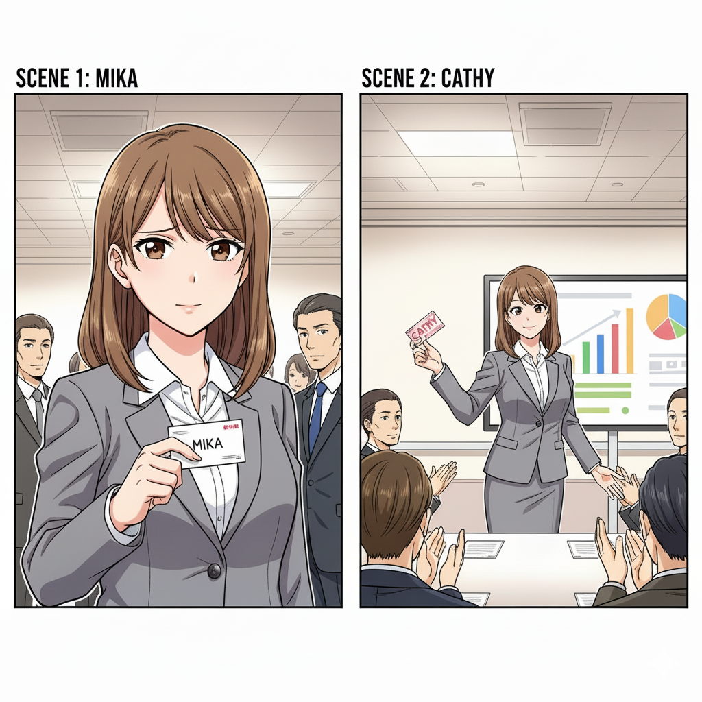 ある時、彼女が仕事で新しいプロジェクトチームに入ることになり、心機一転して「キャシー」というビジネスネームを使い始めました。