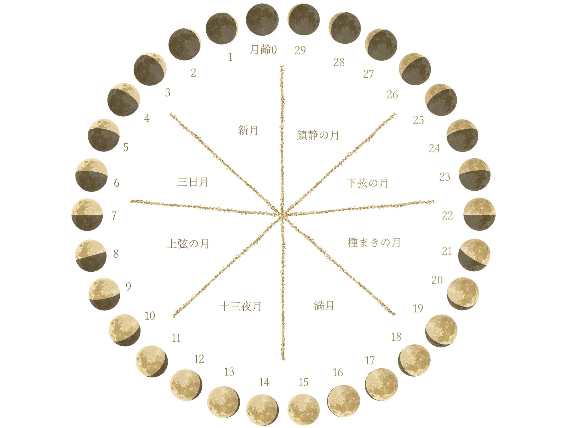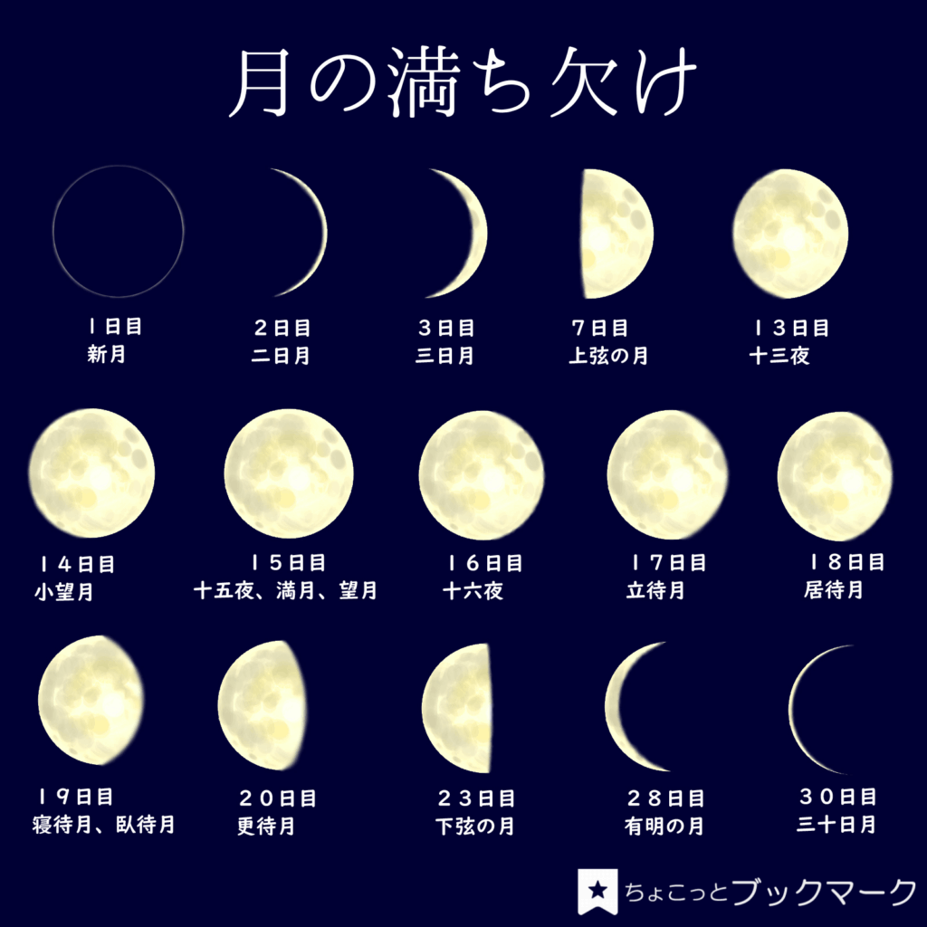 新月を「朔(さく)」、満月を「望(ぼう)」と呼び、そこから日数を数えていくことで、私たちは今がどの時期なのかを把握してきました。