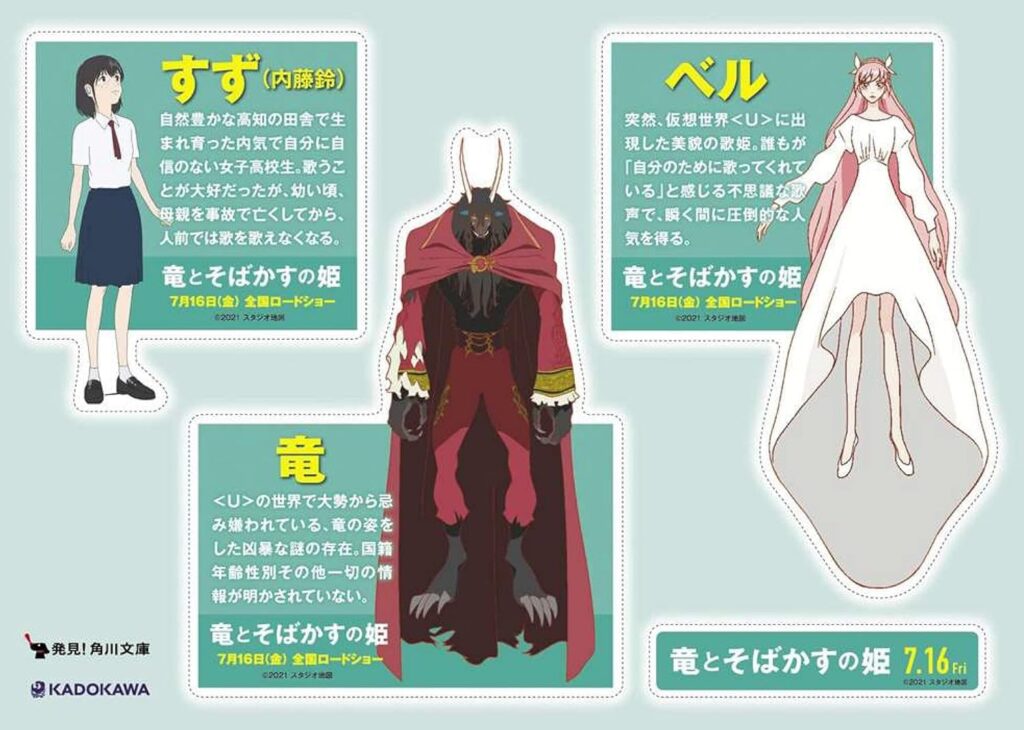 特に『竜とそばかすのひめ』では、現実世界の「内藤鈴(ないとう すず)」と、インターネット仮想世界〈U〉の歌姫「ベル」という、二つの名前が主人公に与えられています。