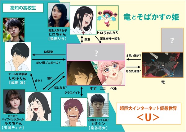 しかし、親友ヒロちゃんの手引きでインターネット仮想世界〈U〉に入り、「ベル」というアバターを得たすずは、一変します。