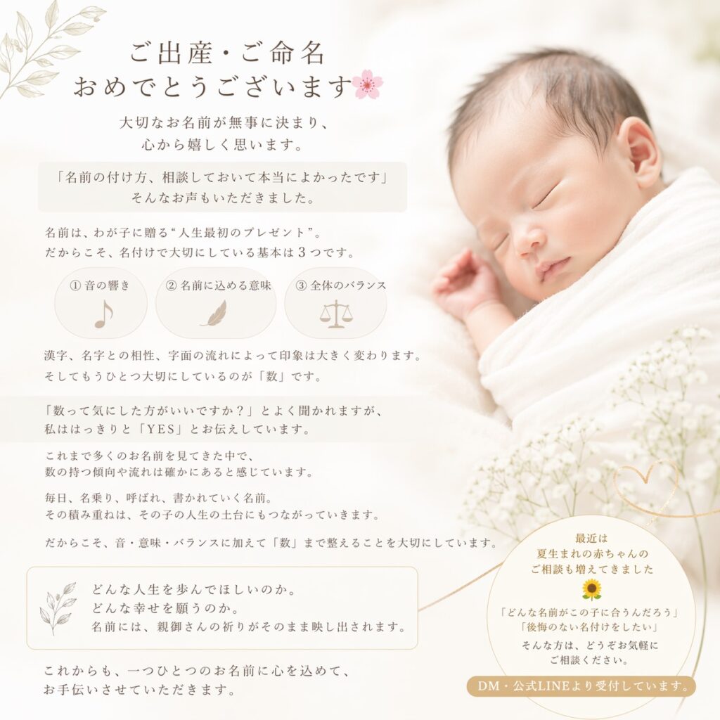 名付けで後悔したくないという方はぜひ一度ご連絡くださいね。