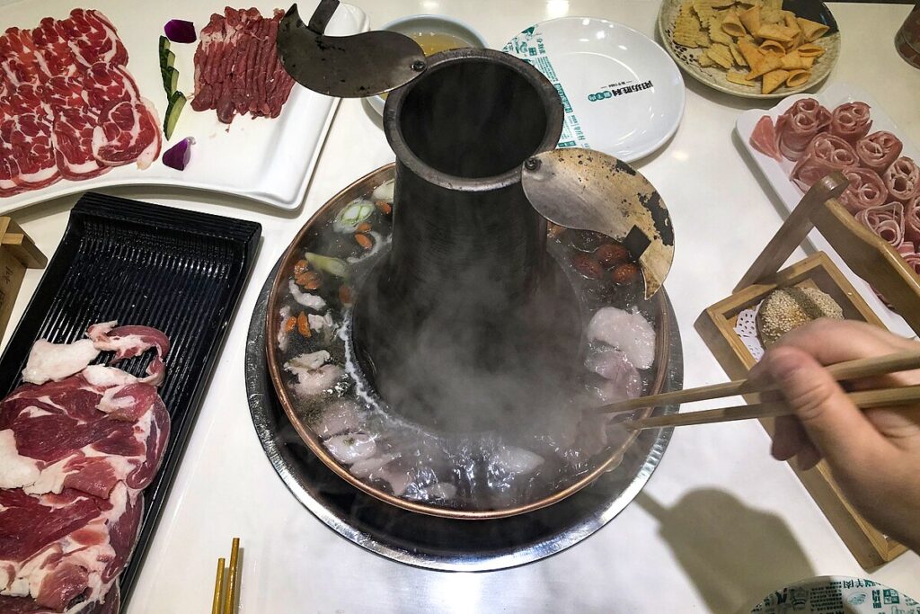 これは、薄切りにした羊肉を熱い鍋の中でさっとくぐらせて食べる鍋料理で、北方民族の食文化が起源とされています。