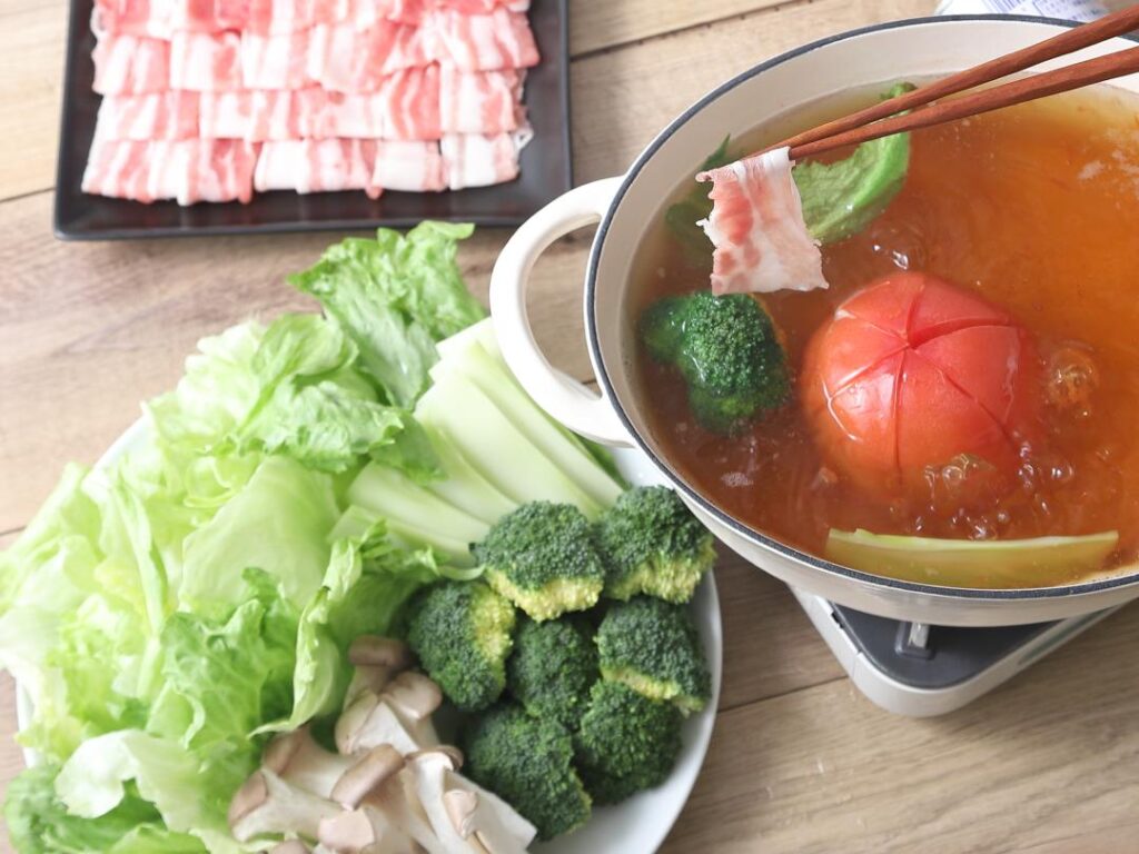 まろやかで優しい味わいは、女性にも大人気です。〆はチーズを加えてリゾット風にするのもおすすめですよ。 - トマトしゃぶしゃぶ: